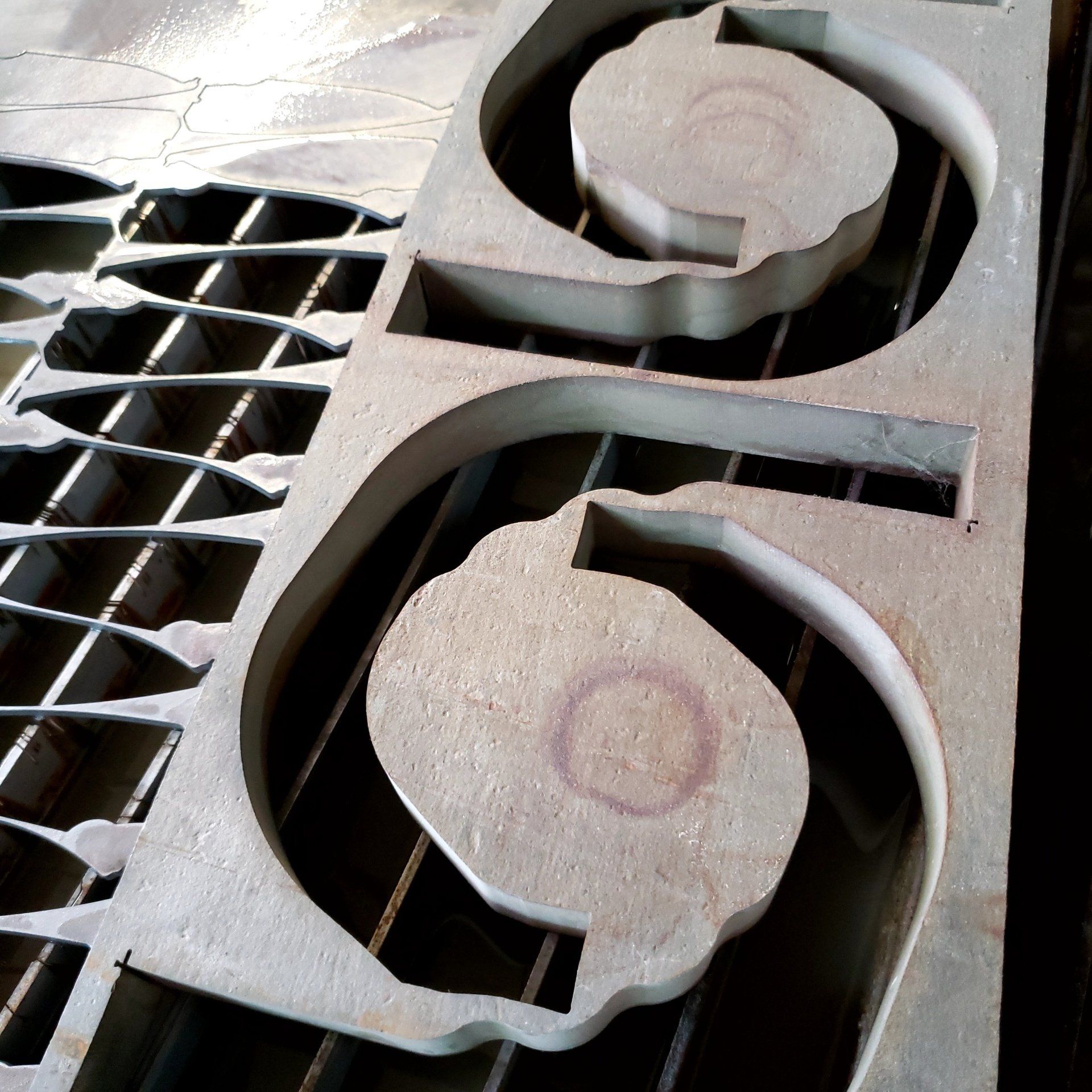 Our waterjet cutting set-up is relatively easy, so our minimums are a modest 20 of any one part. There are some exceptions for larger parts - gun ports for example.